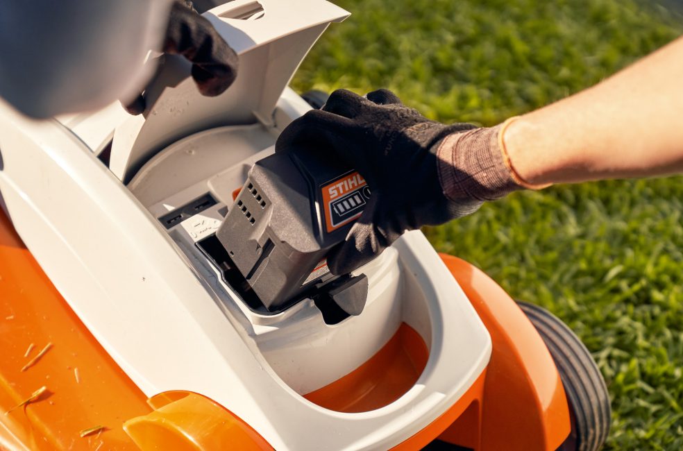 Batterie entfernen: Entfernen Sie die Batterie, falls Ihr Rasenmäher eine hat, und lagern Sie sie an einem trockenen und frostfreien Ort.