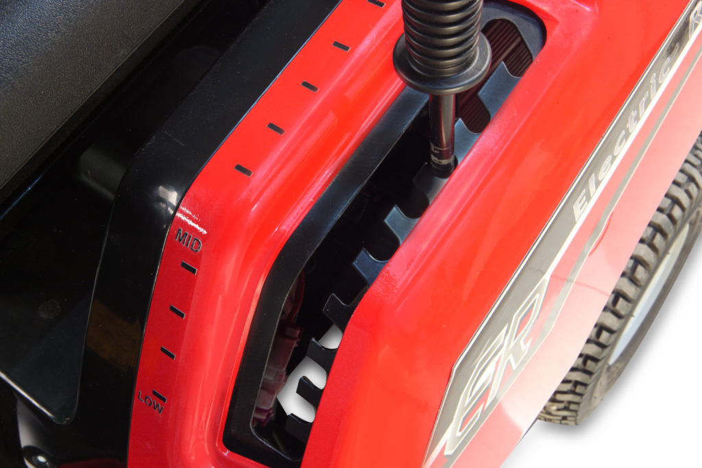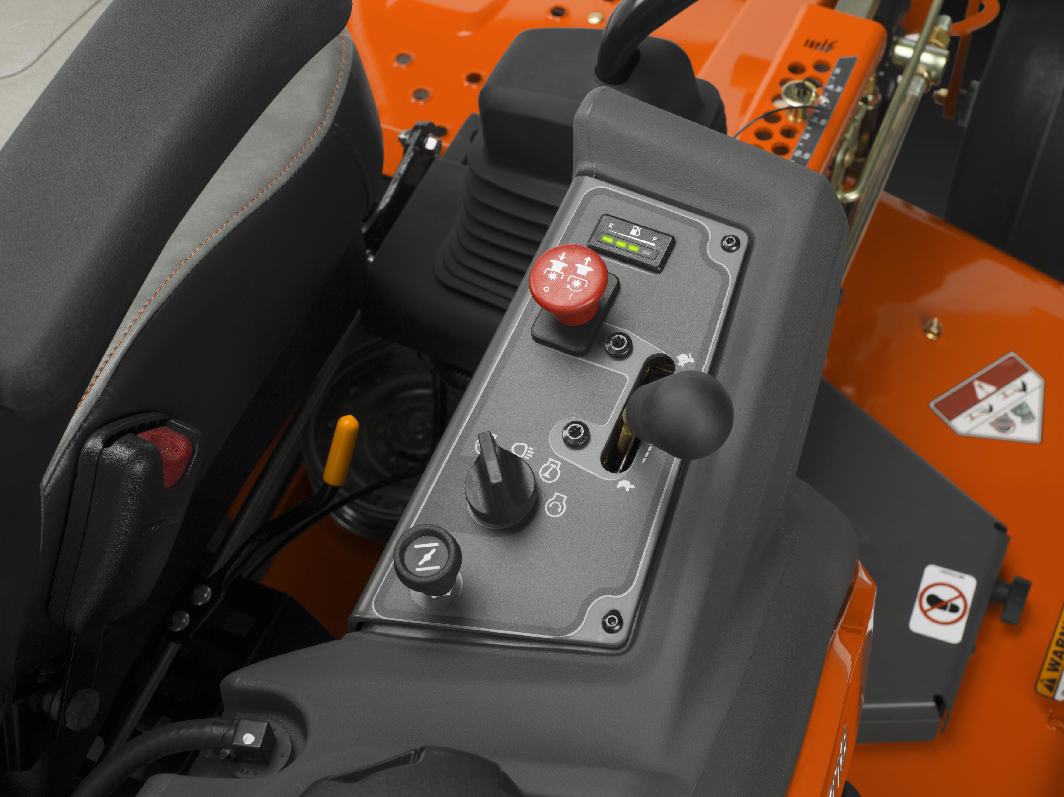 Die vibrationsgeschützte Sitzplattform und Gummipuffer sorgen für eine bequeme und ergonomische Bedienung. Dies reduziert die Ermüdung bei der Verwendung und ermöglicht eine angenehme Arbeitserfahrung. Das robuste, pedalgesteuerte System zum Anheben des Decks ermöglicht eine einfache Bedienung des Geräts.